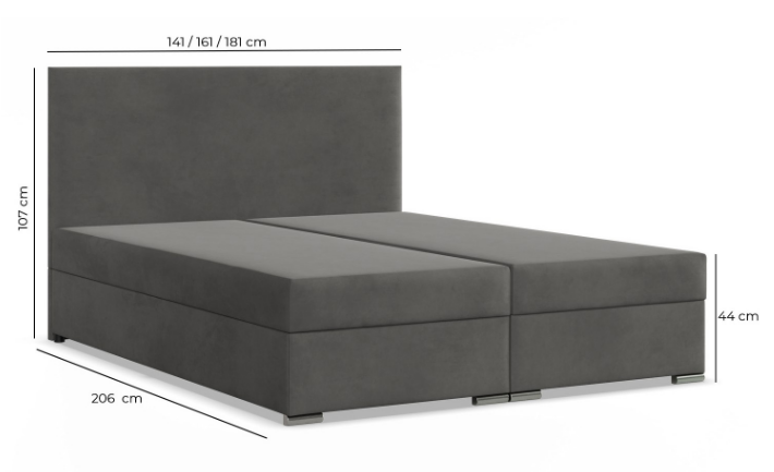 - Pohodlí a estetika – měkká konstrukce zdůrazňuje moderní design postele.